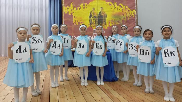 Ведущие мероприятия рассказали, как велика заслуга братьев Кирилла и Мефодия в истории просвещения славянских народов, о возникновении письменности, долгом пути к современному алфавиту и первых рукописных книгах. Зрители познакомились с буквами славянского алфавита, с увлечением поучаствовали в викторине «Сначала АЗ да БУКИ, а потом науки». Музыкальные номера в исполнении ансамбля «Виринея», хореографической группы «Позитив», участников театрального кружка «Клио» украсили мероприятие.