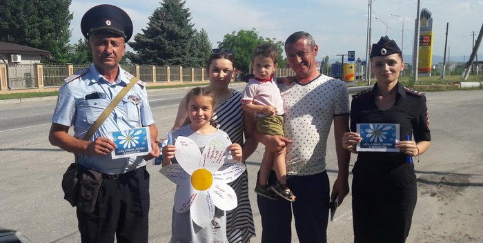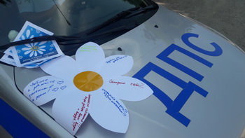 Автоинспекторы вместе с детьми подготовили необычное мероприятие для водителей. Останавливая их, организаторы акции поздравляли с праздником и просили каждого написать ответ на вопрос: что каждый из них может сделать для обеспечения безопасности на дороге? Бумагу предлагали вырезанную в форме лепестков. Многие также писали пожелания участникам дорожного движения.