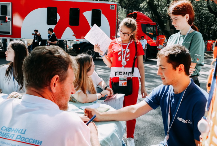В течение пяти часов выездная бригада Ставропольской краевой станции переливания крови принимала участников форума. После короткого анкетирования, которое проходят для выявления противопоказаний, каждый желающий смог стать донором.