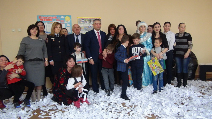 В рамках всероссийской благотворительной акции «Полицейский Дед Мороз» сотрудники управления по контролю за оборотом наркотиков МВД по КБР совместно с представителями местной администрации г.о. Нальчик, и департамента образования побывали в школе №12. Они посетили коррекционный класс, где обучаются дети с ограниченными возможностями здоровья. Участие в мероприятии приняла представитель общественного совета при МВД по КБР Радима Макоева.