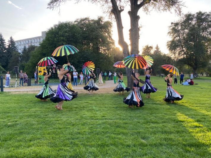 Мероприятие школы искусств открыли поздравлением жителей и гостей республики, которым пожелали мира, добра и процветания. Организаторы выразили надежду, что новый сквер станет излюбленным местом досуга и активного отдыха, сделав жизнь горожан комфортнее и безопаснее. Затем микрофон перешёл к юным артистам, безупречно владеющим искусством создания хорошего настроения. Праздник открыли воспитанники студии спортивного бального танца под руководством Татьяны Унежевой. Произведение «Флаг России – триколор» прочитала учащаяся студии «Театральное творчество» Анастасия Казанцева. В этот день студия, которой руководит Марина Мисостишхова, представила несколько стихотворных произведений, в том числе «Ты – музыка, а я слова», «Слово и хлеб», «Поэт и владыка» и «Родная земля», прочитанные Иланой и Инарой Уянаевыми. За песней «Горный край» в исполнении Умара Гобеджишвили последовали хореографические композиции учащихся студии национального танца, руководителем которой является Роман Нагудов. «Встреча у родника» и «Гордость джигита» погружают в историю и дают пищу для размышлений. Программу продолжили запоминающиеся произведения студии «Сольное пение», педагогом которой является Елена Ахмедагаева. Песни «Маков цвет» и «Праздник в городе нашем» в исполнении Елизаветы Шлепнёвой, а также «Алиса в стране чудес», представленная Александрой Кисетовой, вдохновили гостей творческого мероприятия подпевать в унисон юным профессионалам. Композиция «Ай будет круто», уже ставшая брендом, в исполнении Платона Зеленина и Умара Гобеджишвили стала своеобразной кульминационной точкой концертной программы. Красота и мудрость национальной танцевальной традиции в который раз была утверждена парным мсламеем в исполнении юных танцоров Виктории Атабиевой и Мартина Кодзокова.