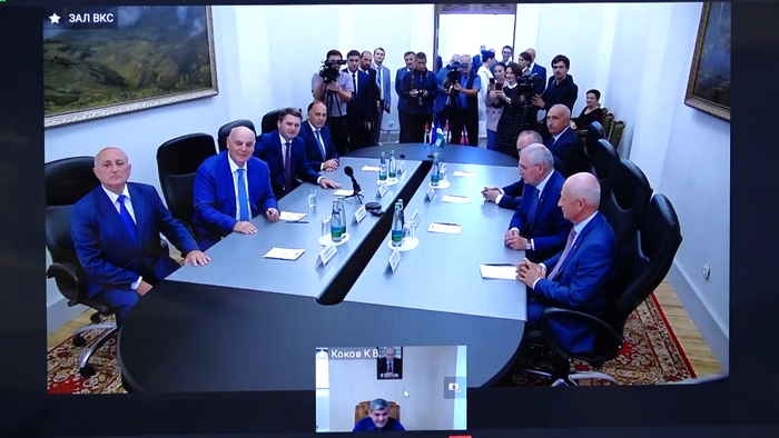 Глава КБР Казбек Коков в режиме ВКС провёл встречу с Президентом Республики Абхазия Асланом Бжанией![]() Сегодня Глава КБР Казбек Коков, находящийся на режиме самоизоляции в связи с положительным тестом на коронавирус, провёл в режиме видеоконференцсвязи встречу с Президентом Республики Абхазия Асланом Бжанией, который приехал в Нальчик во главе делегации для участия в праздновании 100-летия государственности Кабардино-Балкарской Республики.