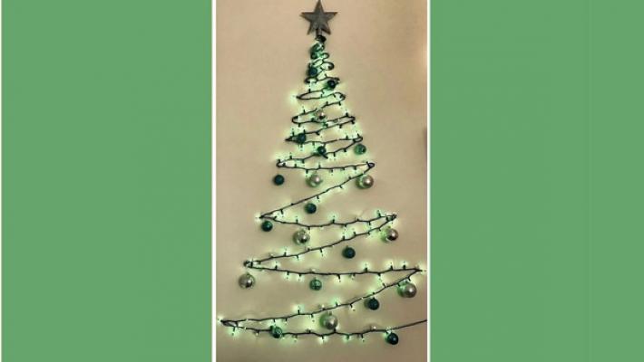 Можно включить воображение и собрать ёлку из гирлянд, книг, веток и предметов интерьера.