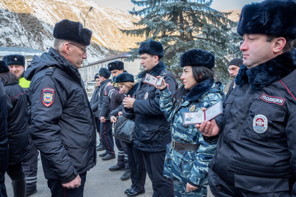 Строевой смотр полицейских Руководством отдела МВД России по Эльбрусскому району совместно с представителями ОПП МВД КБР и Общественного совета при отделе был проведён на площади Первооткрывателей в Тырныаузе открытый совместный инструктаж нарядов комплексных сил и средств. Участниками строевого смотра стали сотрудники местных органов внутренних дел. В ходе инструктажа проводилась проверка строевой выправки, внешнего вида, вооружения и экипировки личного состава, а также сверялось наличие и исправность средств связи, закреплённых за подразделениями. Принявший участие в проведении инструктажа первый заместитель главы администрации Эльбрусского района Арслан Улимбашев поблагодарил полицейских за проводимую работу по обеспечению безопасности жителей и многочисленных гостей, пожелал им и дальше достойно выполнять служебные обязанности.