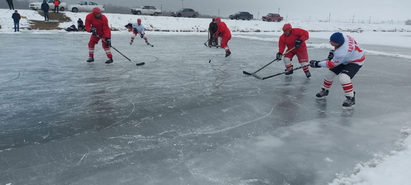 В этом году выход на лёд пришёлся на 14 января. Температура воздуха до -13 градусов по Цельсию позволила любителям этого вида спорта провести матч между командами Терекского и Урожайного. В составе последней также выступили игроки из Арика.