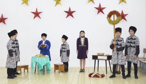 ![]() В этом году конкурс проходил на площадке Центра детского творчества и собрал учеников 3-5 классов 16 образовательных учреждений района, подготовивших театрализованные постановки, которые демонстрировали национальные традиции: этикет приветствия, особенности гостеприимства, встречу и проводы гостя, ввод невесты в дом, укладывание младенца в люльку и другие обряды. Номера также давали представление об особенностях семейного воспитания на Северном Кавказе, в частности, о почитании старших. Инсценировки сопровождались танцами и песнями.