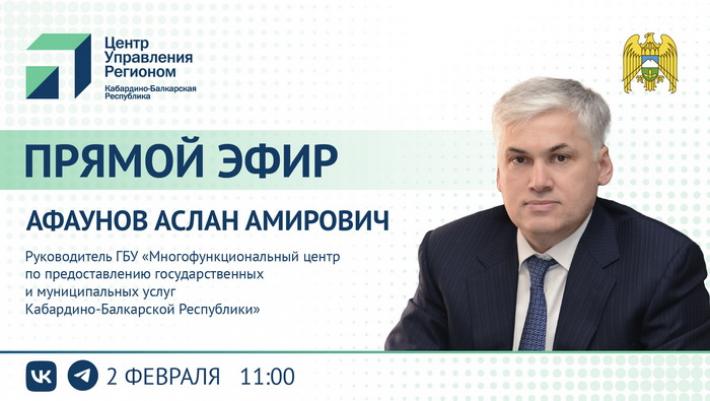 ЦУР КБР проведет прямой эфир с руководителем ГБУ «МФЦ КБР» Асланом Афауновым