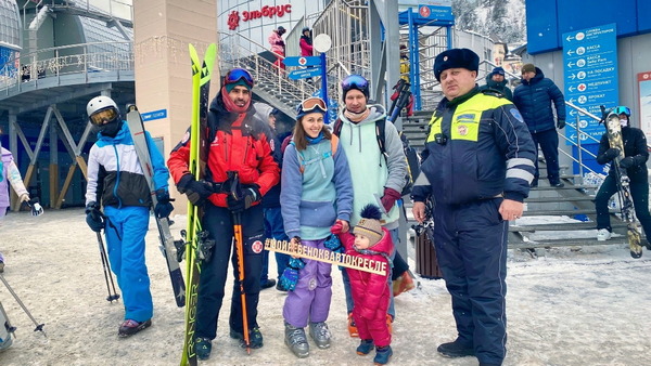 В честь празднования Всероссийского дня зимних видов спорта в курортном районе республики состоялась акция «ПДД и спорт – это жизнь!». Сотрудники Госавтоинспекции отделения МВД России по Эльбрусскому району вместе с профессиональным спасателем, неоднократным призёром соревнований по фрирайду Рустамом Матковским и инструктором по обучению горнолыжному спорту Рустамом Текаевым провели с любителями зимних видов спорта разъяснительные беседы о правилах дорожной безопасности.
