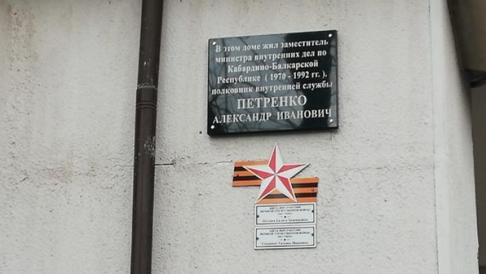 В Нальчике открыли мемориальную доску бывшему заместителю министра внутренних дел по КБР, полковнику внутренней службы Александру Ивановичу Петренко, посвятившему профессии не один десяток лет. Торжественное мероприятие прошло по инициативе бывшего председателя Совета ветеранов органов внутренних дел и внутренних войск республики, полковника внутренней службы в отставке Бориса Думаева при поддержке министра внутренних дел по Кабардино-Балкарской Республике, генерал-лейтенанта полиции Василия Павлова.