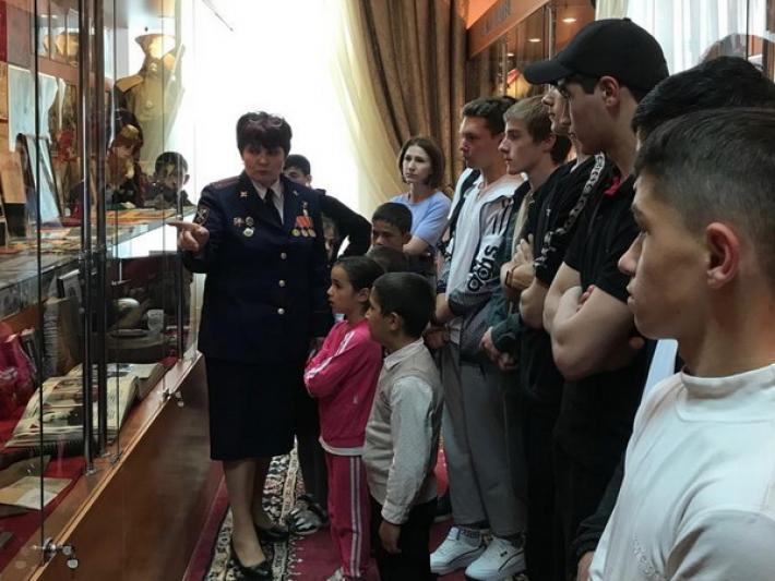 Мероприятие организовано в соответствии с планом работы Совета ветеранов ОВД Кабардино-Балкарской Республики в музее истории МВД КБР. Экспозиционный комплекс, повествующий о героической летописи Министерства внутренних дел Кабардино-Балкарии, посетили юные жители Лескенского района. Инспектор подразделения по делам несовершеннолетних отдела участковых уполномоченных полиции Лескенского отдела внутренних дел Людмила Колманович регулярно организовывает экскурсии в музей ведомства для своих подопечных – подростков, требующих пристального внимания и особой индивидуальной работы сотрудников правоохранительных органов. Яркой и содержательной стала экскурсия, проведённая ветеранами МВД по КБР: членом президиума Совета ветеранов ОВД КБР Алёной Черновой, Еленой Казаченко и ветераном финансовой службы МВД по КБР Еленой Букиной. Акцент встречи был сделан на стенде, рассказывающем о деятельности правоохранительных органов республики в годы Великой Отечественной войны, о злодеяниях нацистов и их пособников на территории Северного Кавказа. У гостей музея многие факты и события, о которых им рассказали ветераны, вызвали большой интерес. Затаив дыхание, подростки слушали историю о деятельности партизанских отрядов, созданных сотрудниками милиции, о гражданском подвиге машинистки НКВД КБАССР Любови Добротворской, расстрелянной гестаповцами после пыток. С волнением разглядывали юные участники мероприятия реликвии военной поры, переданные в музей участниками ведомственного поискового отряда Олегом Заруцким и Евгением Кузьминым.
