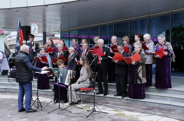 9 мая под аккомпанемент Людмилы Сидельниковой (баян) было исполнено произведение композитора Сергея Рахманинова «Слава народу», а также «На висках осталась седина» – автор музыки Хасан Карданов, «Песня о солдате» – Владимир Мигуля, «Севастопольский вальс» – Константин Листов, «Майский вальс» – Игорь Лученок.