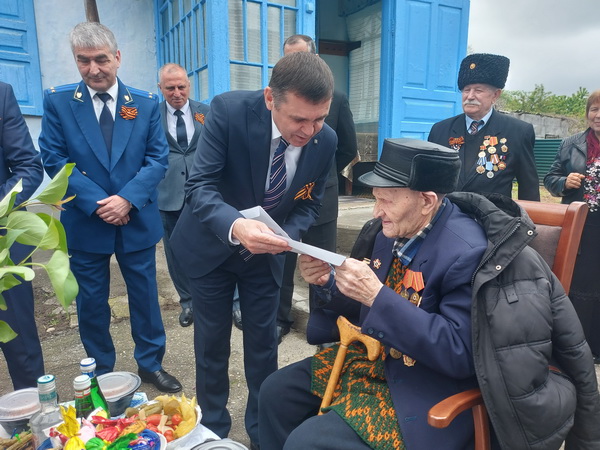 Ветерана поздравили с Днём Победы Руководители Баксанского района и территориальных правоохранительных структур навестили ветерана Великой Отечественной войны Василия Сергеевича Боченкова в селе Кременчуг-Константиновском и поздравили с 78-й годовщиной Победы.