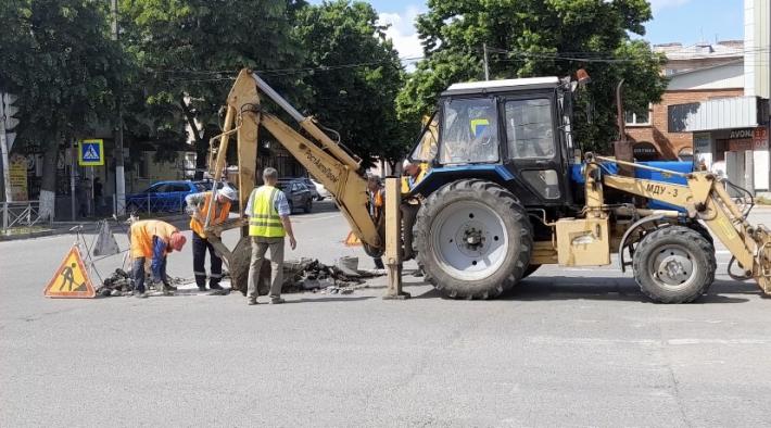 Проведен осмотр указанного участка и установлено, что причиной просадки стало разрушение плит, перекрывающих ливневые каналы. С привлечением спецтехники специалистами Водоканала и Теплоэнерго проведены работы по установке новых усиленных плит и бетонированию указанного участка дороги. Все работы завершены, целостность дорожного полотна восстановлена.