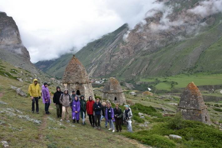 Участники молодёжного этнографического научного лагеря «Сокровище гор» совершили поход к уникальным наскальным рисункам, расположенным в труднодоступном районе у подножия Скалистого хребта.