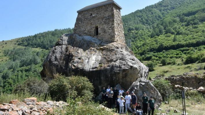 Объектом посещения экспедиторов стали руины древнего поселения Кюнлюм, которое является наиболее крупным в Верхне-Балкарской котловине. Участники проекта познакомились с особенностями древней архитектуры террасообразных аулов, в которых крыша одного дома служит двором для дома, расположенного выше. В тот же день участники посетили башню Абаевых, расположенную в самой верхней части аула и хорошо сохранившуюся до наших дней, поднялись к безымянному водопаду, рождающему реку, ставшую основным источником воды для аула Кюнлюм. Завершающим аккордом экспедиции стал поход к башне Амирхан-Кала, построенной на огромном валуне, оставшемся посреди долины от древнего ледника. От руководителя похода Тенгиза Мокаева молодёжь узнала о том, что в средние века на всех стратегических высотах входов в долину были построены многочисленные фортификационные сооружения, имевшие военное и статусное назначение. Они были расположены в зоне видимости и могли подавать друг другу сигналы, заметив неприятеля. Наибольшее распространение эти сооружения получили в XIV веке, когда на территории Кавказа проходил военный поход войск среднеазиатского эмира Тимура, и возводились вплоть до XVIII века.