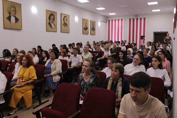 8 сентября в Детской школе искусств г. Прохладного гостеприимно открыла свои двери музыкально-поэтическая гостиная. «Вся жизнь моя в стихах моих» - так называлась тема гостиной, посвящённая 100-летию со дня рождения Расула Гамзатовича Гамзатова – народного поэта Дагестана, прозаика, переводчика, публициста, общественного деятеля. Организаторам и участникам удалось создать проникновенный мини-спектакль, в котором ведущие – режиссёр ДШИ Елена Блинова и учащаяся театрального отделения Маргарита Козина - раскрывали зрителям некоторые страницы жизни и творческой деятельности юбиляра, а чтецы – учащиеся СОШ №8 им. А.С. Пушкина и учащиеся театрального отделения Детской школы искусств, а также методист библиотеки им. Маяковского Ольга Ступенькова и главный библиотекарь Наталья Голованова - выразительно, искренне, с душой читали стихотворения Расула Гамзатова. Музыкальный фон – тихо звучащая национальная дагестанская мелодия и видеопрезентация, подготовленная Надеждой Слюсарь, зам. директора СОШ №8, помогали созданию особой лирической атмосферы гостиной.