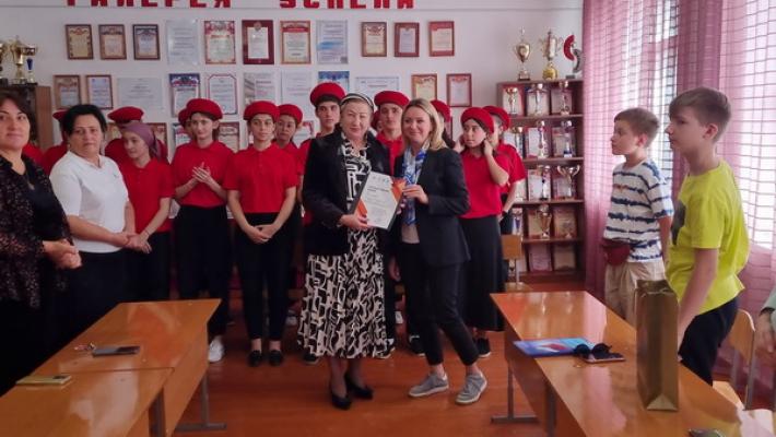 На днях директору школы села Кишпек Дадусии Балкаровой вручили благодарственное письмо за поддержку школьных музеев, участие в работе всероссийской долгосрочной программы развития «Школьный музей Победы» и вклад в патриотическое воспитание подрастающего поколения.
