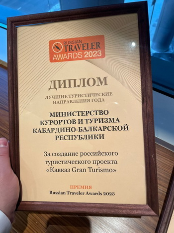 Подведены итоги голосования в рамках ежегодной национальной туристической премии «Russian Traveler Awards 2023», который организует журнал «Russian Traveler». Кабардино-Балкария награждена двумя дипломами. Министерство курортов и туризма КБР отмечено за вклад в создание российского туристического проекта «Кавказ Gran Turismo», а стратовулкану Эльбрус жюри присудило первое место в номинации «Природный объект».