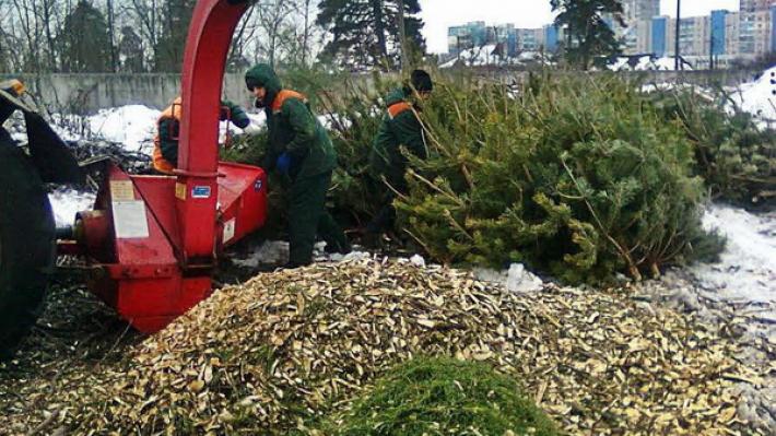 С точки зрения лесоперерабатывающей промышленности ель – хороший материал для переработки в щепу. Она идёт на посыпку экологических троп в городах, также щепой устилают вольеры животных. В городах сбор елей проходит централизованно: мэрии и экологические организации открывают пункты приёма елей и оповещают граждан через местные СМИ и группы в социальных сетях. В России акции в городах называются по-разному. Например, в Москве это «Ёлочный круговорот», в Санкт-Петербурге и Ленинградской области – «Ёлки, палки и щепа», в Туле – «Сдай елку на переработку!», в Сочи – «Ёлку в переработку».