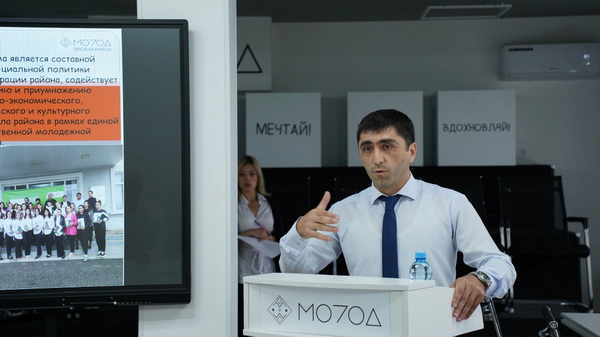 Соискатели звания лучшего работника сферы молодёжной политики представляют экспертам свои предложения. Ринат Шомахов – начальник отдела молодёжной политики Терского муниципального района – подготовил программу комплексного развития молодёжного сектора в муниципалитете. Главным в реализации ключевой цели проекта он видит межотраслевое взаимодействие. В частности, партнёром стал Республиканский центр занятости и социальной защиты населения.