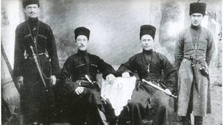 Слева направо: Хамзет Куржиев, Нури Цагов, Гузер Куржиев, Али Шогенцуков. 1919 г.