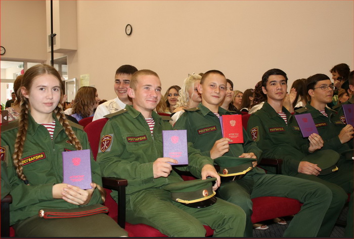 Торжественное вручение аттестатов об окончании 9 класса ученикам класса Росгвардии лицея №7 имени Шуры Козуб прошло в селе Ново-Ивановское Майского района.