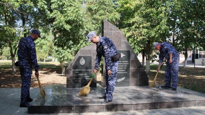 На страже памяти![]() Сотрудники вневедомственной охраны Росгвардии и ветераны службы в г. Прохладном благоустроили памятник советским воинам, сражавшимся на фронтах Великой Отечественной войны. В рамках всероссийской ведомственной акции, также росгвардейцы также привели в порядок мемориал погибшим при исполнении служебных обязанностей сотрудникам органов внутренних дел.