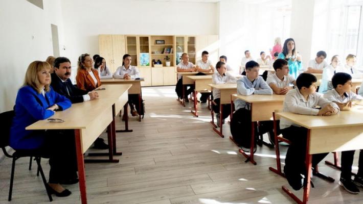 В уроке для восьмиклассников школы №4 г. Майского приняли участие министр просвещения и науки Кабардино-Балкарии Анзор Езаов, глава местной администрации Майского муниципального района Татьяна Саенко и начальник управления образования местной администрации Элеонора Скотаренко.