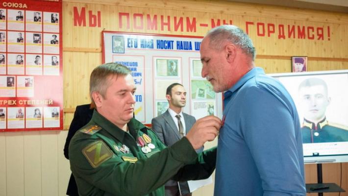 В Тырныаузской школе №6 состоялась церемония награждения медалью «Отец солдата». При содействии филиала Государственного фонда «Защитники Отечества» по КБР к этой высокой награде был представлен Расул Тебердиев - отец старшего лейтенанта Рамазана Тебердиева, погибшего 19 июня 2022 года при выполнении боевых задач в ходе специальной военной операции на Украине под Лисичанском.