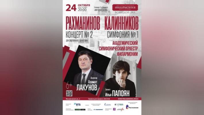 За пультом Академического симфонического оркестра в этот вечер дебютирует Азамат Лакунов – лауреат международных конкурсов, сотрудничающий с Кабардино-Балкарской государственной филармонией и Кабардино-Балкарским государственным музыкальным театром. Прозвучат Второй фортепианный концерт Сергея Рахманинова и Первая симфония Василия Калинникова.