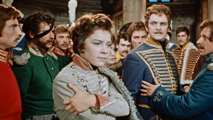 «Гусарская баллада» (1962) Фильм «Гусарская баллада» стал звёздным часом для Ларисы Голубкиной, сыгравшей Шурочку Азарову – дворянскую дочь, отправляющуюся сражаться в Отечественной войне 1812 года. Костюмированная музыкальная комедия завоевала сердца зрителей, едва выйдя на экран: людей увлекали и запоминающиеся песни, и нетривиальный сюжет. Да и актёры подобрались на редкость харизматичные – чего стоит только поручик Ржевский в исполнении непревзойдённого Юрия Яковлева! К слову, часть костюмов, которые мы можем увидеть в кадре, была пошита для съёмок «Войны и мира». Конечно, современный зритель непременно углядит в этой картине Эльдара Рязанова некоторые исторические или стилистические неточности, но от этого «Гусарская баллада» не становится хуже, ведь за постановочной яркостью прячется самая главная мысль – любовь сильнее войны, смерти и предубеждений.