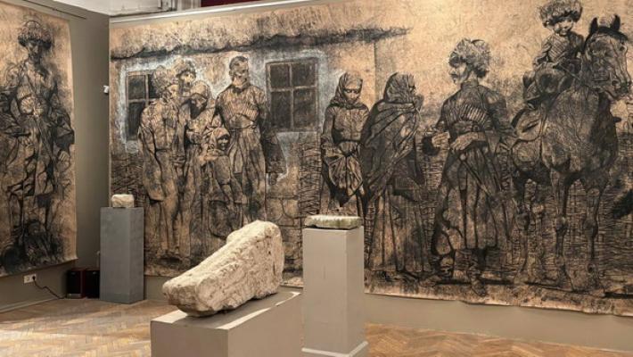 В Итальянском зале Санкт-Петербургской академии художеств им. И. Репина состоялось открытие выставка Хамида Савкуева, на которой можно увидеть монументальные рисунки к произведениям Льва Толстого «Хаджи-Мурат» и «Казаки». Здесь также представлены каменные скульптуры, созданные автором.