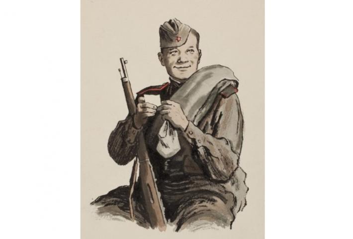 Самая известная иллюстрация поэмы – это рисунок художника Ореста Верейского. На нём изображён молодой красноармеец с открытым русским лицом и весёлым прищуром глаз. На плече у него скатка, на голове пилотка, а в руках бумага для самокрутки и кисет.