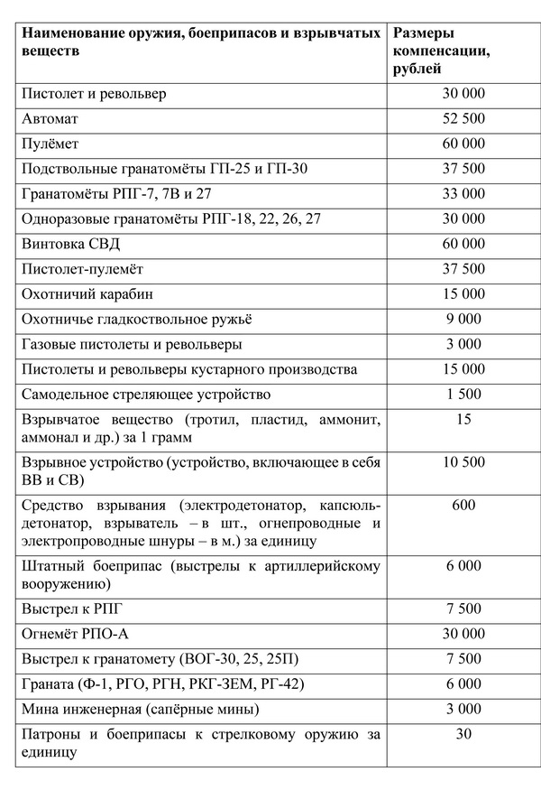 Вниманию жителей Кабардино-Балкарии!На территории Кабардино-Балкарской Республики реализуется государственная программа «Профилактика правонарушений и укрепление общественного порядка и общественной безопасности в Кабардино-Балкарской Республике» на 2021-2025 годы от 31 августа 2020 г. № 191-ПП, в которую пунктом 1.3. включены мероприятия по разработке и реализации комплекса мер по стимулированию добровольной сдачи населением оружия, боеприпасов, взрывчатых веществ и взрывных устройств, находящихся в незаконном обороте (далее – Подпрограмма), в рамках которой из республиканского бюджета для граждан предусмотрено соответствующее вознаграждение. Указанные выплаты производятся Министерством труда и социальной защиты Кабардино-Балкарской Республики в рамках реализации постановления Правительства Кабардино-Балкарской Республики от 9 июля 2014 г. № 148-ПП. Размеры денежной компенсации за добровольно сданное оружие, его основные части, боеприпасы, взрывчатые вещества и взрывные устройства