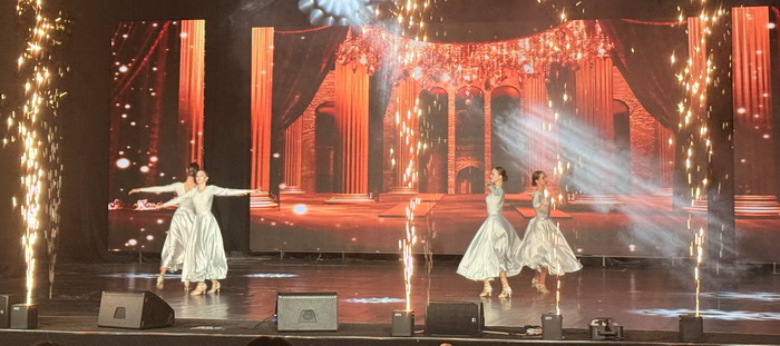 Зрелищный старт фестивалю дало совместное выступление нескольких танцевальных коллективов – эстрадного, народного и современного стилей. К артистам театра танца КБГУ «Каллисто» присоединились воспитанницы старшей сборной спортивного клуба «Нирвана». Виртуозные танцевальные рисунки сопровождались визуальными и звуковыми эффектами, сгенерированными нейросетью, а также огненными фонтанами и дымовым шоу. Далее участники фестиваля в парадном шествии и с флагами своих учебных заведений прошли по сцене.