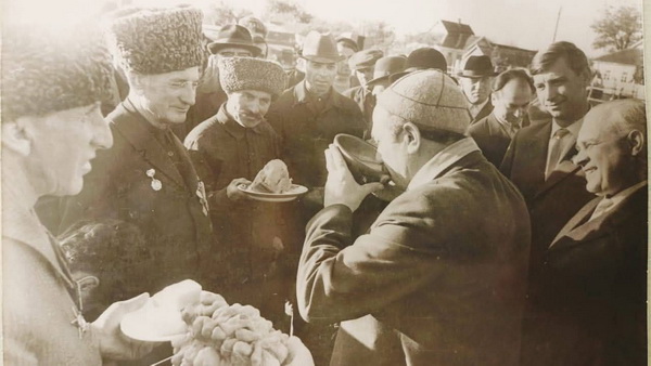 ![]() С махсымой Кайсын Шуваевич Кулиев, перед ним активный участник ВОВ Тута Алиханович Булатов.