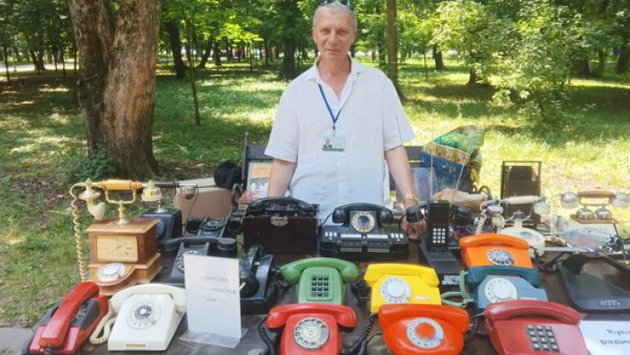 Единственную тематическую экспозицию дня представил председатель Общества коллекционеров КБР Сергей Грищенко. Взоры посетителей приковали несколько десятков телефонных аппаратов, один из которых просто уникален. Но прежде, чем окунуться в мир телефонии, несколько слов о главном коллекционере республики. Сергей Грищенко обладает множеством самых разнообразных вещей. Их количество назвать он не сможет - давно сбился со счёта, но ведёт учёт по тематикам: радиотехника, история республики, предприятий и многое другое. Если говорить об истории телефонии, то артефактов набралось около 200. Он всегда что-то собирал, начинал с марок и юбилейных монет. Будучи инженером по специальности, Грищенко с особым пиететом относится к аппаратуре. Неудивительно, что он собирает радиотехнику, разыскивая практически всё, что производилось в СССР. Дань уважения к истории республики - внушительная коллекция хороших вещей, производившихся на заводах «СКЭП», «Телемеханика», электровакуумном, где он работал в разные годы. Его первая выставка изделий этих заводов вызвала самые тёплые чувства у посетителей, среди которых были даже инженеры, их разработавшие. Один из экспонатов коллекции Грищенко – раритет в полной мере исторический.