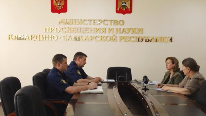 В Министерстве просвещения и науки Кабардино-Балкарии состоялся круглый стол по вопросам организации образовательного процесса в исправительных учреждениях региона. Участие в совещании приняли заместитель начальника УФСИН России по КБР Николай Никитин, заместитель министра просвещения и науки КБР Екатерина Мисостова.