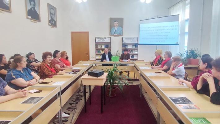 О противодействии диверсионно-террористической деятельности![]() Участниками состоявшейся в Государственной национальной библиотеке КБР им. Т.К. Мальбахова информационной беседы «Методы украинских спецслужб по вовлечению россиян в диверсионно-террористическую деятельность» стали заместитель министра по делам национальностей и общественным проектам КБР Джамбулат Гергоков, сотрудники библиотеки, а также члены общественных организаций – Совета женщин г.о. Нальчик, регионального отделения всероссийского женского союза «Надежда России».