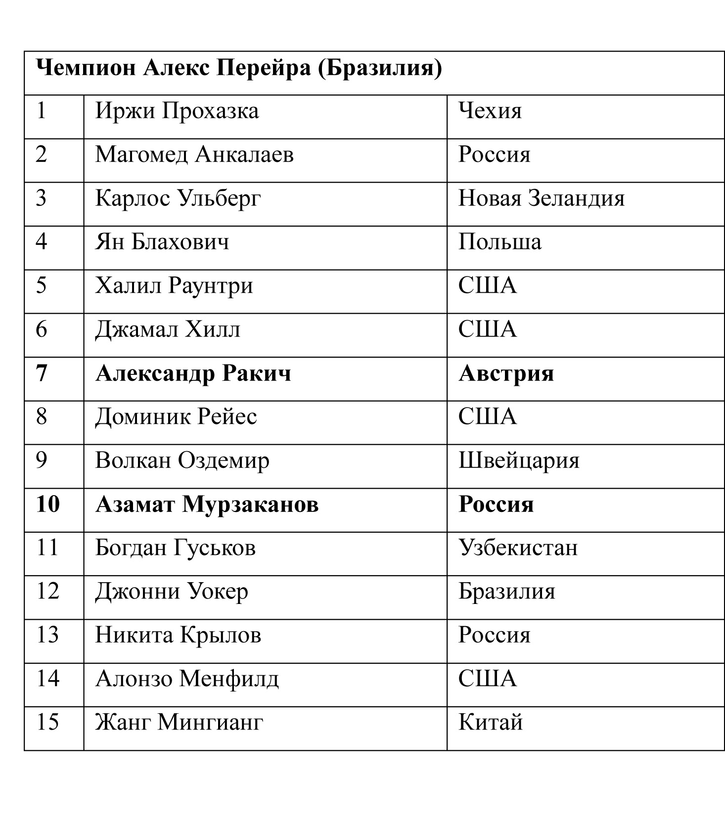 После этой победы Азамат сам попал в топ-10 полутяжёлого дивизиона. И теперь его мечта, точнее обоснованное желание, сбылась. Ему в соперники достался австрийский боец Александр Ракич, занимающий в рейтинге седьмое место. Это самый серьёзный соперник Мурзаканова в карьере.