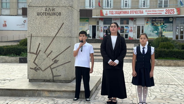 Мероприятие началось с минуты молчания и рассказа о творческом пути Али Асхадовича, его героизме в годы Великой Отечественной войны и любви к своему Отечеству, а затем для собравшихся выступили творческие коллективы городского дворца культуры, которые подготовили несколько номеров, а учащиеся образовательных учреждений округа прочитали гостям известные стихи Али Шогенцукова.