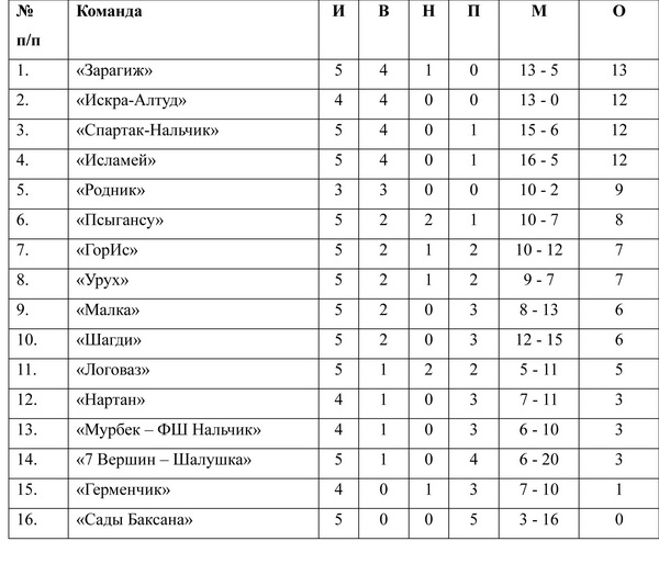 Без проблем очередных крупных побед добились и «Родник», и «Искра-Алтуд». Обе команды по-прежнему идут без очковых потерь, а команда из Прохладненского района сохраняет в неприкосновенности свои ворота.