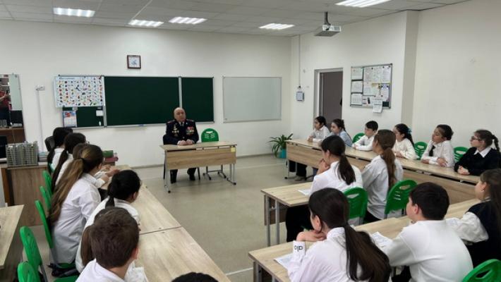В рамках акции «Дни Росгвардии», приуроченной к 10-летию ведомства и к 215-летию образования войск правопорядка, председатель Совета ветеранов управления Росгвардии по КБР полковник полиции в отставке Руслан Хужоков провёл урок мужества для учеников нарткалинской школы № 6.