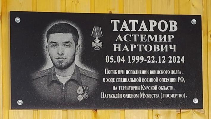 Астемир Татаров в октябре 2024 года после лечения в военном госпитале приехал домой. Перед отъездом он побывал в родной школе, увиделся с любимыми учителями. 22 декабря 2024 года Астемир попал под массированный артобстрел вблизи населённого пункта Погребки в Курской области, получил тяжёлое ранение, но позиции не покинул. Продолжал подавлять огневые точки противника, прикрывая эвакуацию раненых и отход боевых товарищей и техники из-под обстрела. Татаров награждён медалью «За отвагу» и орденом Мужества (посмертно).