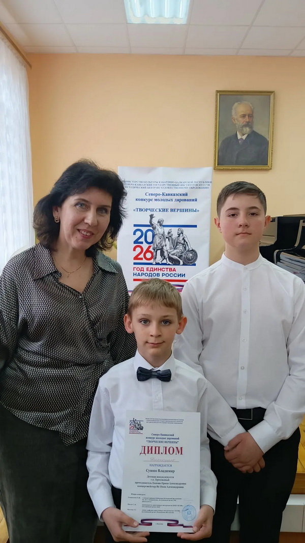 Несмотря на переполненный зал, атмосфера была камерной, публика тепло принимала и поддерживала выступление каждого участника конкурса. Детскую школу искусств городского округа Прохладный представляли учащиеся оркестрового отделения скрипачи Владимир Сушко и Павел Курганов (класс Ирины Поповой), а также Ангелина Рязанова (флейта, класс Ларисы Нарховой).