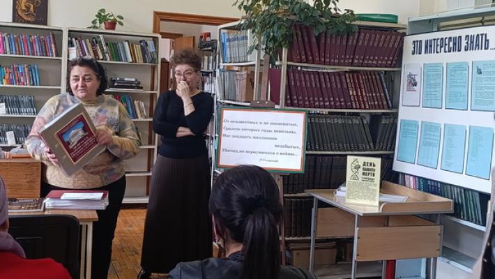В Государственной национальной библиотеке КБР им. Т. К. Мальбахова прошла презентация второй части историко-исследовательского проекта «Память» – «Без срока давности. Свидетельствуют документы: библиография на службе истории». На встречу пригласили слушателей курсов повышения квалификации сотрудников городских и сельских библиотек при Министерстве культуры КБР. Именно им, тем, кто ежедневно работает с книжными фондами и читателями, предстоит передавать собранные документальные свидетельства дальше – в самые отдалённые уголки республики.
