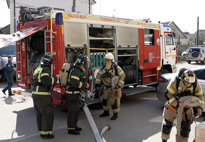 Прибывшие на место происшествия огнеборцы получили от дежурного необходимую информацию о месте возгорания и путях подхода к нему. Затем пожарные развернули рукавные линии и прошли внутрь здания. Сотрудники пожарно-спасательной службы эвакуировали пострадавшего из здания при помощи спасательных устройств и ликвидировали условный пожар.