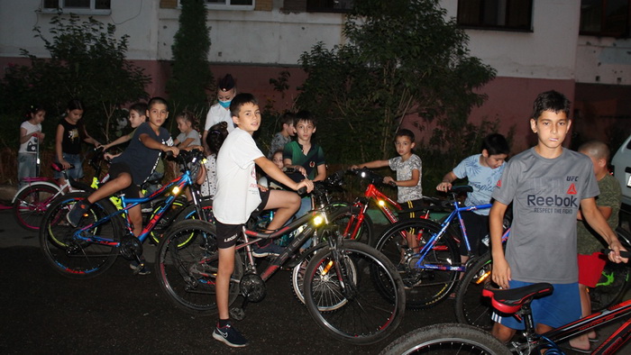 По вечерам сотрудники ГИБДД помогают детям оснащать средства индивидуальной мобильности световозвращающими приспособлениями и изучать безопасное взаимодействие водителя и ребёнка.