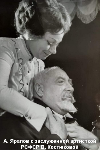 Те, кому посчастливилось играть с А. Яраловым на одной сцене, говорят, что жизнь и творчество этого величайшего артиста прошли золотой нитью по истории Русского драматического театра им. Горького. Будучи его директором (с 1966 по 1985 год), он всегда перевыполнял финансовый план. Старожилы театра вспоминают, каким Александр Сергеевич был, в хорошем смысле слова, жадным до работы. Мог встать в пять утра, обойти несколько учреждений, чтобы обеспечить как можно больше зрителей на спектакли, и прийти в театр раньше всех. Александр Сергеевич сыграл более ста ролей, среди которых Старик в одноимённой пьесе Горького, Лавр Миронович в спектакле «Бешеные деньги» Островского, Роман Кошкин в «Любови Яровой» Тренёва, Юрий Михайлович в спектакле «Жених по объявлению» Рацера и Константинова, Букин в спектакле «Закон вечности» Думбадзе.