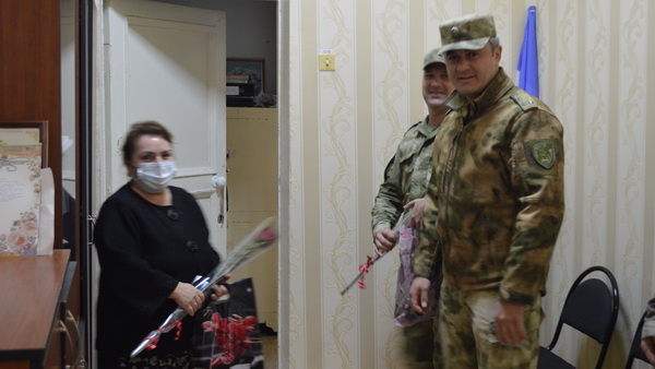 Росгвардейцы вручили учителям цветы и выразили благодарность за их нелёгкий труд.